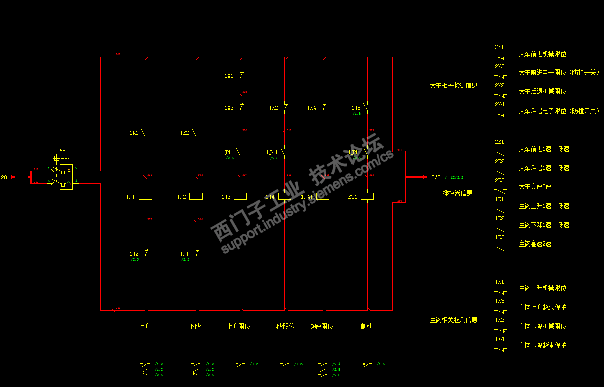 这个在外部是有硬件互锁的,并且我也把超速接进了抱闸的继电器内,保证溜钩时断电合闸
