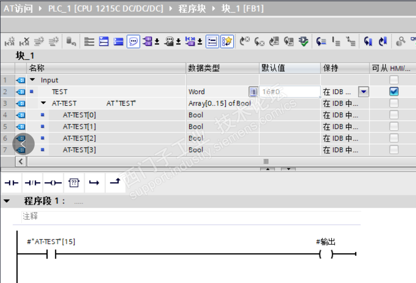 我的问题:1.我的理解是定义的word变量 TEST应该从第0位开始和数组的第0位一一对应,也就是说应该是AT-TEST[15]应该和TEST的第15位对应,结果不是!当TEST=H80时,AT-TEST[15]为ON,那么AT访问中是怎样的对应关系?