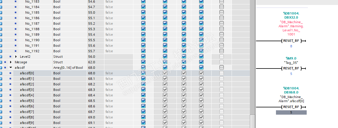 今天在用RESET_BF指令时,发现该指令用M位的时候可以直接输MX.X,但用DB块时只能是ARRY,不能直接使用非ARRY的位,非整数复位时是否只能一个一个复位?