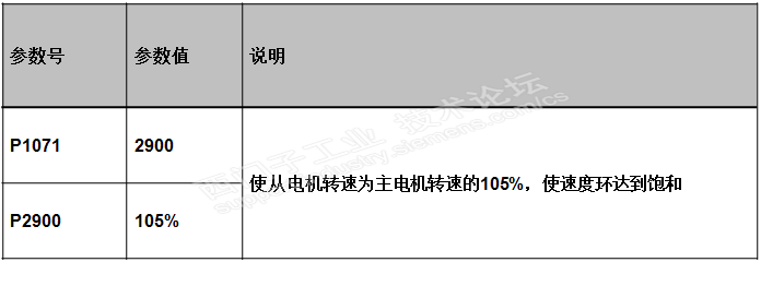 保证从机速度环饱和,给从驱动器的速度设定偏置设定如下:
