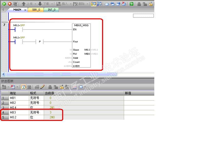 1) 先说说MBUS_CTRL初始化错误报警3(超时无效);我在验证时由于用一条简易的双绞线,之前是做过与富士温控仪时modbus rtu通讯验证过的,时间一长也忘了具体的连接,很随意的连接后就下载程序测试了。监控程序时发现居然有报警,想起刚刚接线时想打开原先的DP插头检查的,打开原DP插头果然是连接错误改接后,MBUS_CTRL初始化无错误。