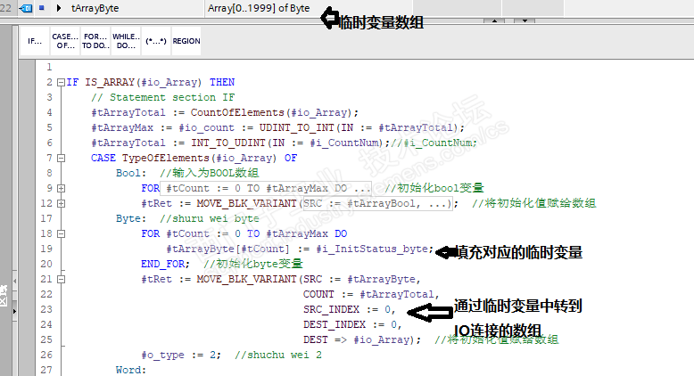 我做了一个快速填充功能块(也可快速将数组初始化),通过临时变量来中转一下,大家看下是否有更简单的方法实现这样的功能,如下图