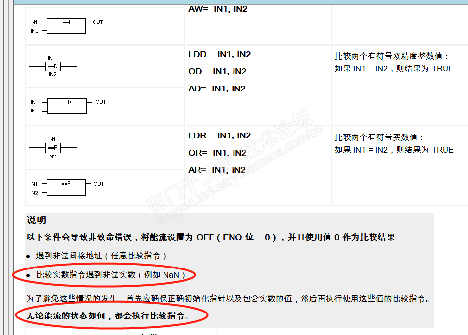 对对对,这就是一个子程序中的,是同级,是上个程序段,因为上个程序段LD0可能存在非实数,触点不成立时,未对LD0重新赋值,但执行了比较指令。。好的,谢谢季侠