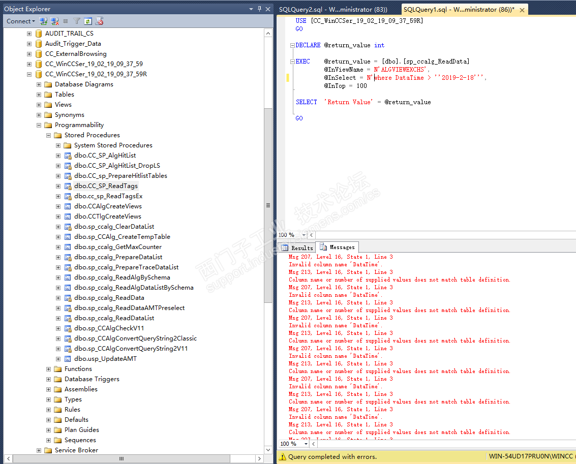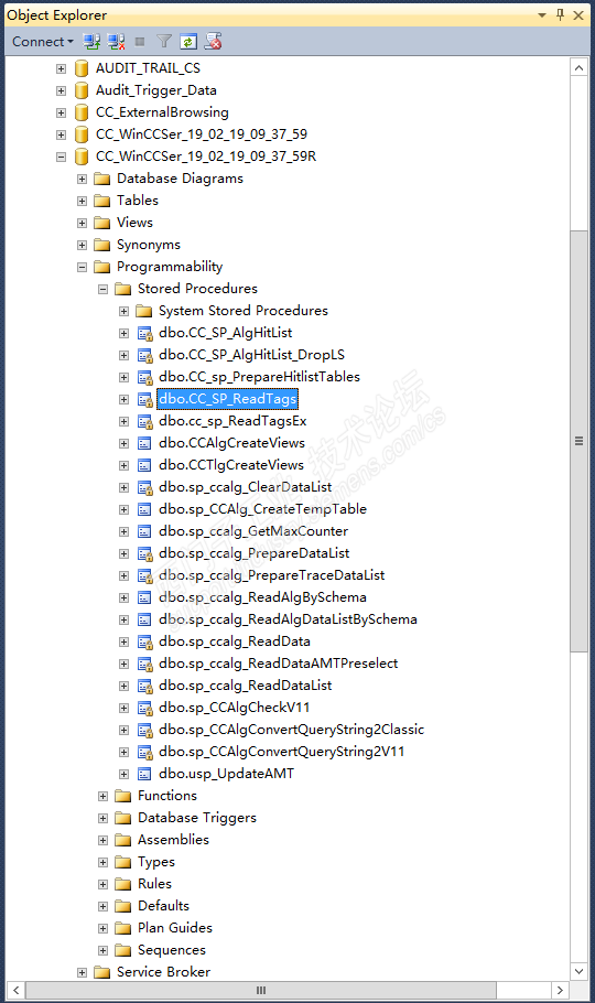 打开SQL Server 管理器,可以看到WinCC里自带有许多存储过程,这些存储过程有使用说明吗?尝试用CC_SP_ReadTags读取到变量记录了,读报警的sp_ccalg_ReadData却不成功。