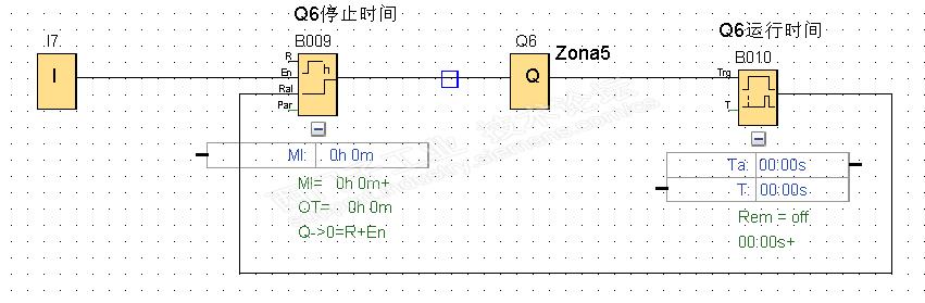 每一个输出Q代表一个区域,相对应的I点表示此区域的启停按钮,在I点接通的情况下,每一个输出区域Q点的停顿时间用“运行小时计数器”来设定, 开启时间用"接通延时定时器"来设定,如图1所以;如果要屏蔽掉一个输出区域Q点的输出(对应的I点接通状态下),怎样通过设定运行小时计数器和接通延时定时器的设定时间为0来实现,如图2所以,需要对对设定时间做判断,如果两个设定时间同时为0,则Q点复位,望各位大神给指点指点,不胜感谢!