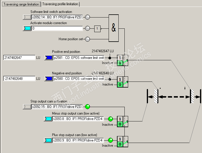另外作为左右2个极限位置的开关 i0.0 i0.1 ,分别赋值给 .ConfigEPos.%X29 .ConfigEPos.%X30