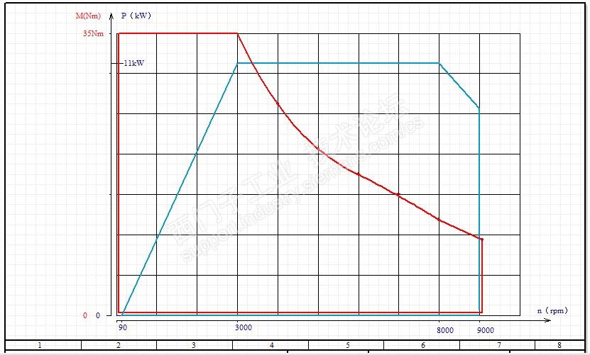 红色曲线包罗的区域就是电机的额定转矩能力范围;蓝色曲线包罗的区域是电机的额定功率驱动能力范围。如果负载超过范围,就是过载了。电机的运行会不正常。