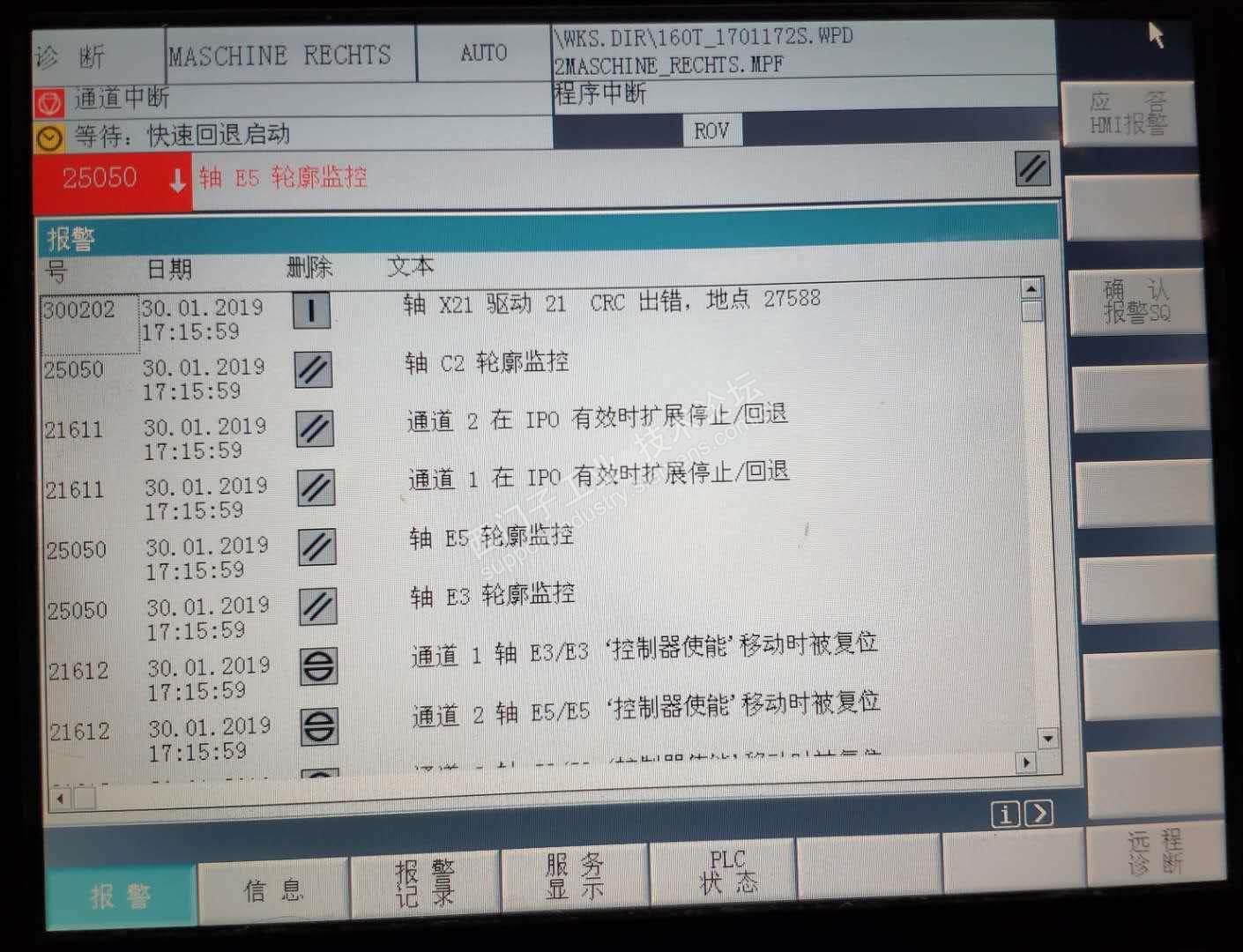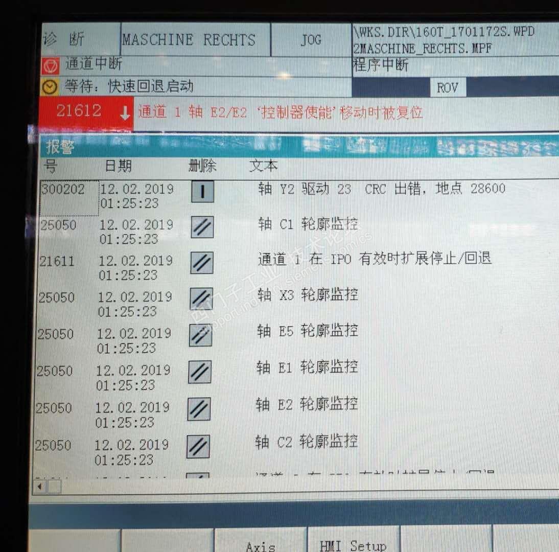 报警是后面几个驱动随机出现,X11 X21 Y2 B2 B3轴随机出现,驱动轴卡都换了试过无效果,NCK也总清过,清除过后好2天,再次报警。