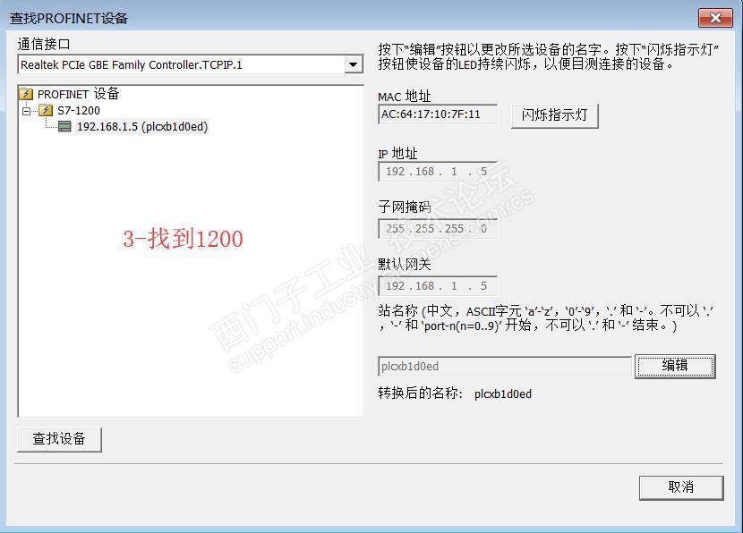 你好,还是通信不上,查找PROFINET设备是可以找到的,猜测是设备名称问题,这是我的几步操作: