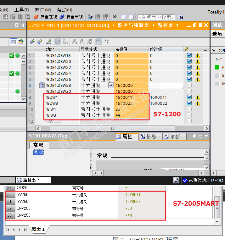 组态完的S7-1200与S7-200SMART的IO地址映射关系: