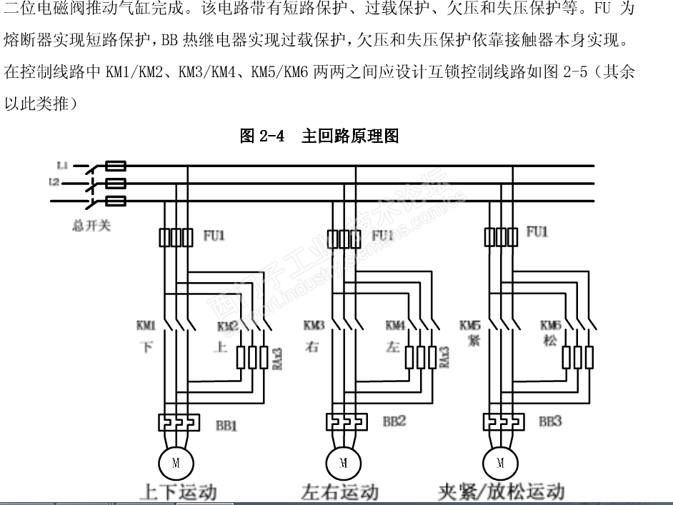 PLC控制机械手驱动分为电机驱动和气压驱动, 由电磁阀推动气缸动作,那主电路图里的M不是电机吗?这个电路图有神魔用处能告诉下吗,谢谢