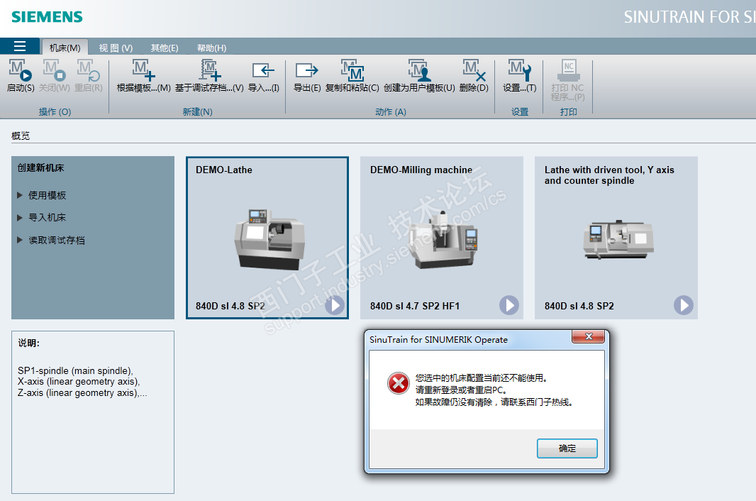 sinu train 4.8版本安装后创建机床无法启动,授权均已安装,之前用过4.5的一段时间后无法使用,后更换成4.7也是无法启动机床,现在换成4.8还是无法启动,授权都是安装的,有没有不重装系统的解决办法啊,现在系统为WIN7 64 位。