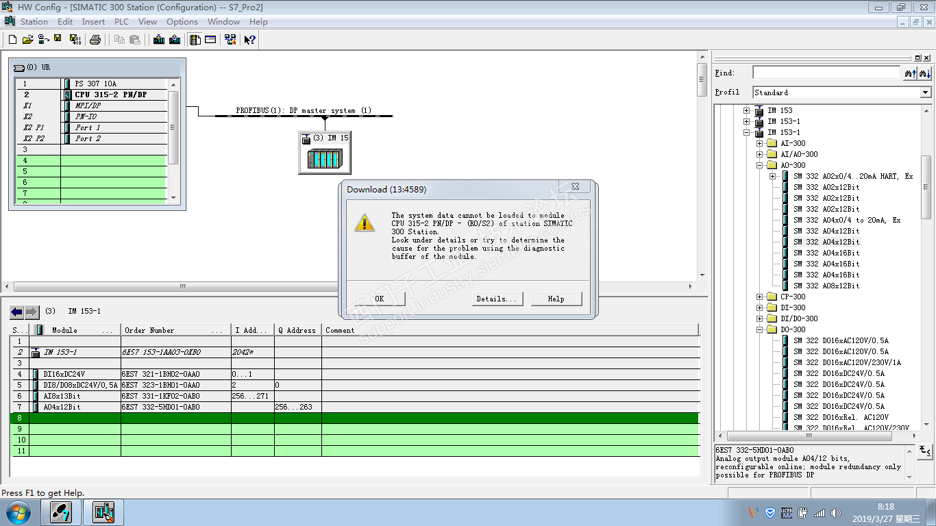 通过step7驱动s7-300驱动ET200M,未组态是CPU能空载启动,组态后下载到PLC是报错,请问需要哪些OB模块还是其它?