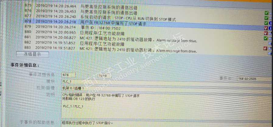 如上图诊断所示,博途Step7新手,麻烦帮助查看一下什么原因,将项目打开,点击在线查看,CPU就STOP了!