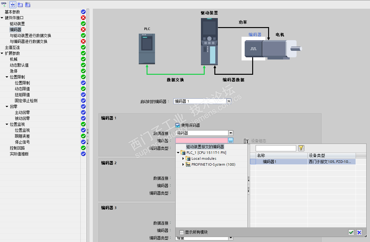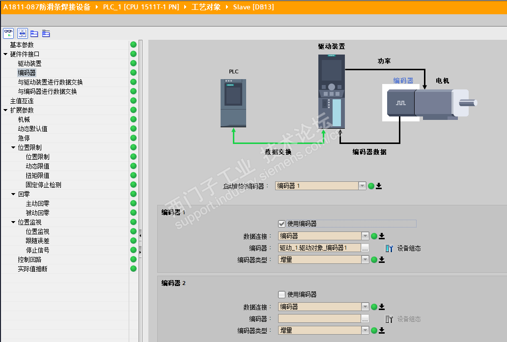 4.看了看Z版的“在TO(工艺对象)中如何组态V90 PN的编码器设置?”有一句“TO(工艺对象)中的编码器设定值必须与驱动器中的值保持一致”,只是我在工艺组态,编码器1中选择了编码器1后,编码器类型自动变为增量,虽然不影响使用,也没有报错,但总觉得有点...
