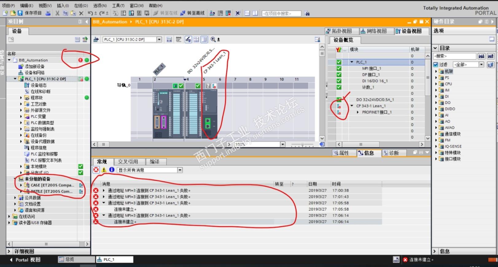 1:实际硬件组态中不存在CP 343-1 LEAN-1这个以太网通讯模块,但上载上来却多了这么一个模块。