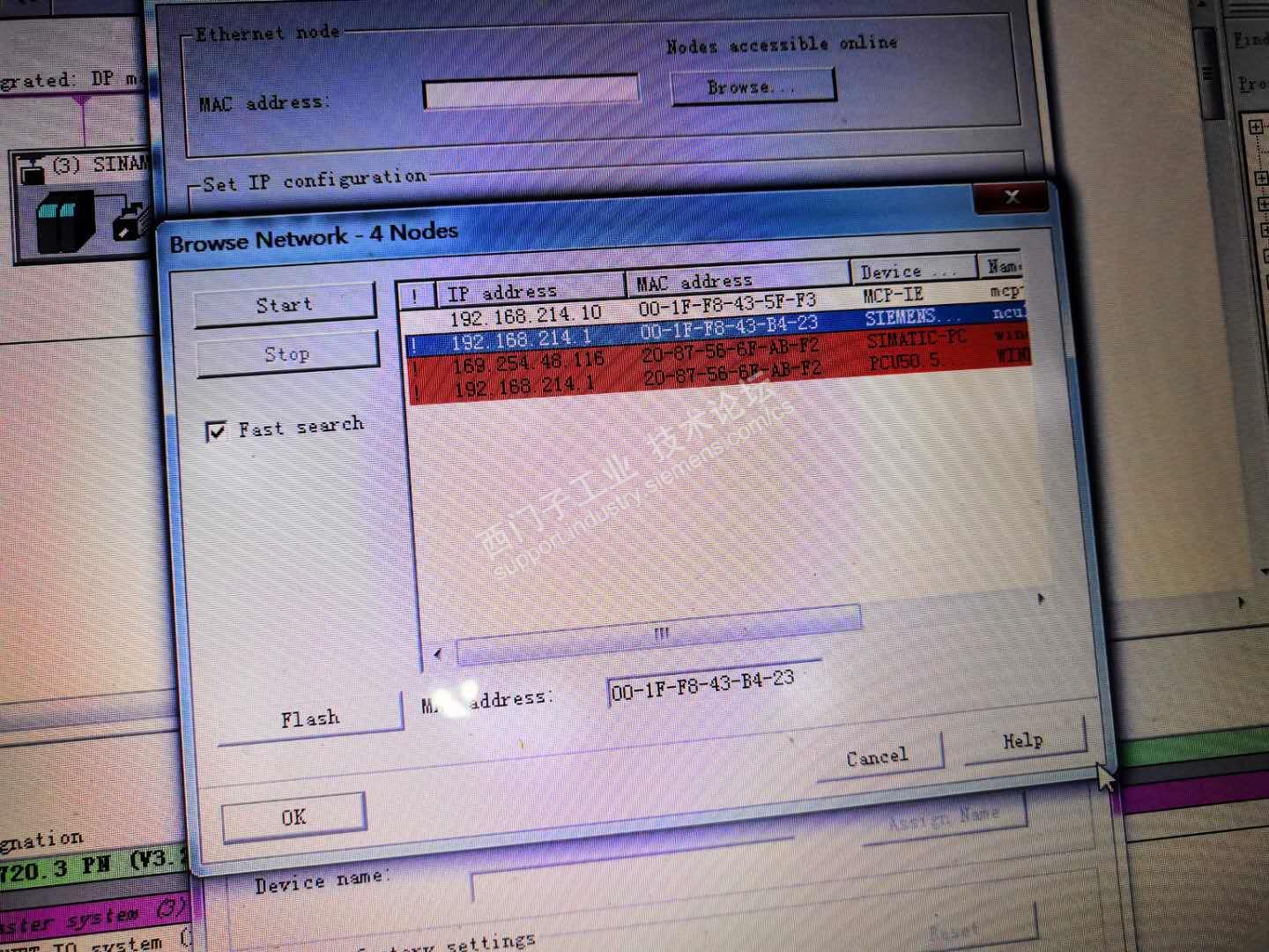 这是通过NCU的X127接口连接PC机上看到的节点,能看到连接在以太网X120上的几个设备,但也挺奇怪,PCU连接的是X2接口,PCU的MAC地址是20-87-56-6F-AB-F2,相同的MAC地址有两个IP,两个名称;NCU的X120接口的MAC地址是00-1F-F8-43-B4-23,但看到IP地址居然与PCU一样,两个不同的设备有同一个IP?这又是怎么回事呢?看手册上以及论坛上的贴子说通过NCU的X120以太网连接的设备是不用自己设置这些的。