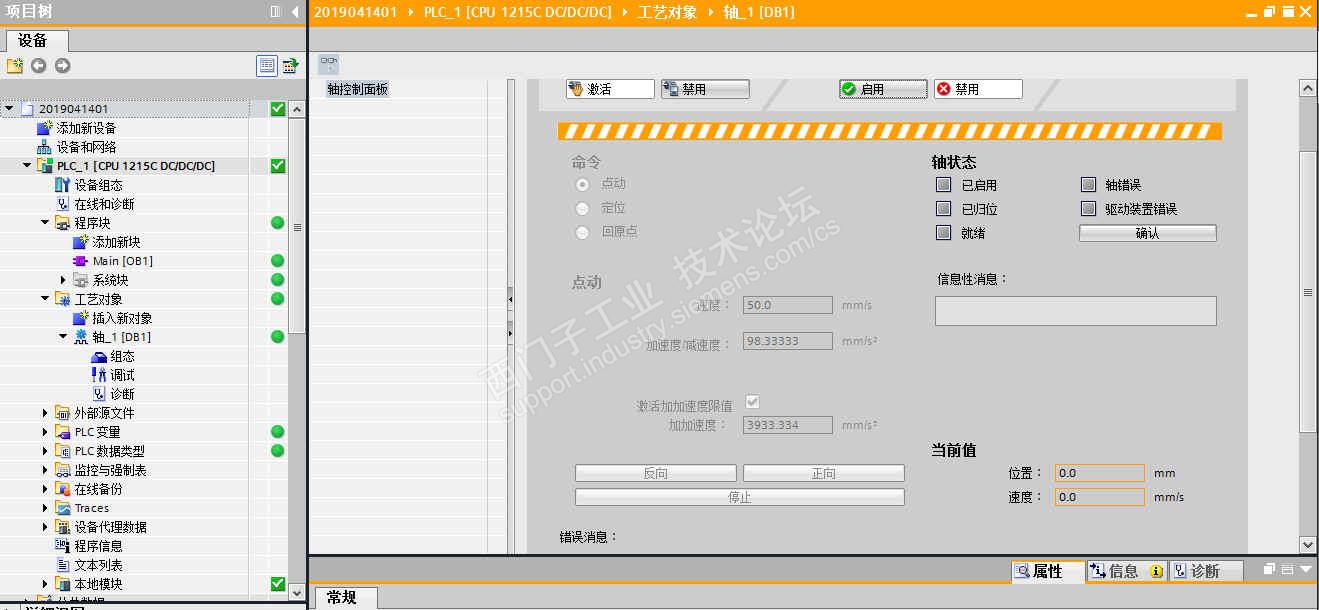 用一个S71200(1215DCDCDC)带一个2M542-N的驱动器拖动步进电机,进行轴工艺组态后,进行控制面板手动调试,能够激活面板,也能够启动轴(启动轴后,使能能打开,电机轴能手动转动),但是点击点动后,有输出脉冲信号,但是电机不转,请高手帮助指点!
