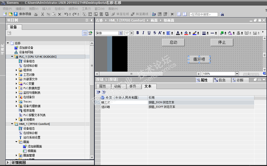 如图,当点击按钮的时候,文本没有任何变化,但是与PLC连接的变量已经发生改变,请问文本应该怎么设置,本人已将文本设置了,列出来的就是更改的地方,请高手指点一下。