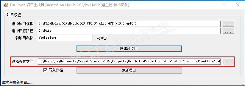 完成选择后点击按钮“创建新项目”来生成一个基于标准框架的新项目。然后再选择我们之前已经配置好的Excel模板文件。