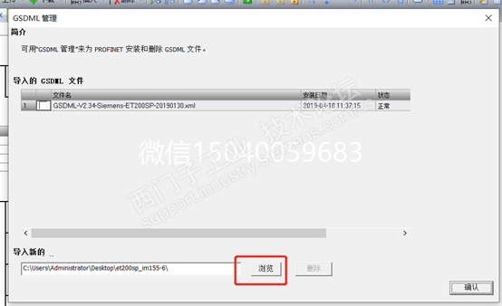 点击浏览,找到下载好的GSD文件,点击确认