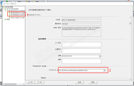 更改电位组,由于接口模块后第一位为供电端子,必须组态为供电模组,上面所说有人做实验接口模块不报错挂端子就报错,估计就是没有组态供电段的问题。