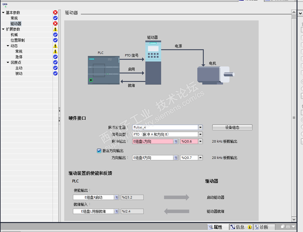 发现西门子还有一个不好的地方,我组态脉冲输出的时候,只要选择了那一路,它会默认给你分配一个输出这样很不好。。。。1214只有前面四个Q0.0---Q0.3是100kHZ,后面四个是20KHz的,四个轴的话只能是把脉冲放在前面四个,方向用后面四个。