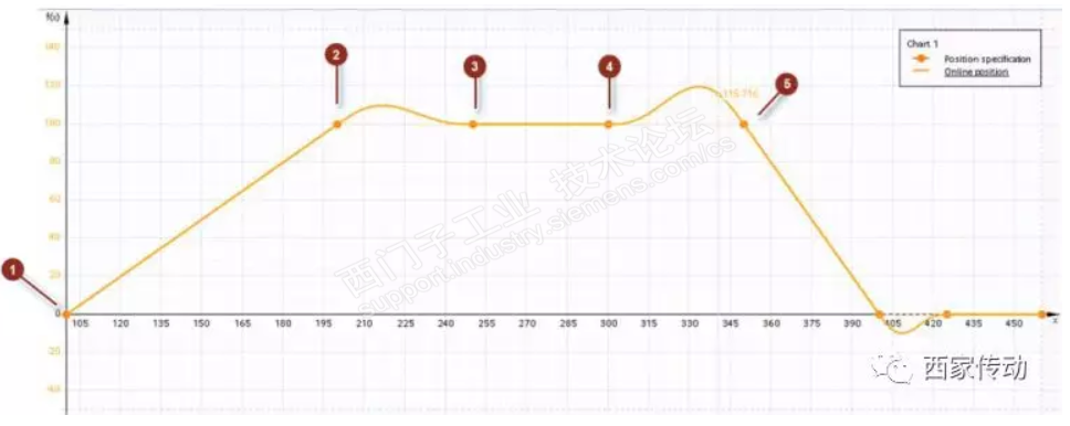 在程序运行时定义Cam曲线中的点及动态响应,运动过渡均通过直线及5次多项式进行连接。使用此功能块创建Cam曲线,很容易处理生产机器最常用的凸轮轮廓,如图1所示Cam曲线是由8个点,通过此功能块来生成的