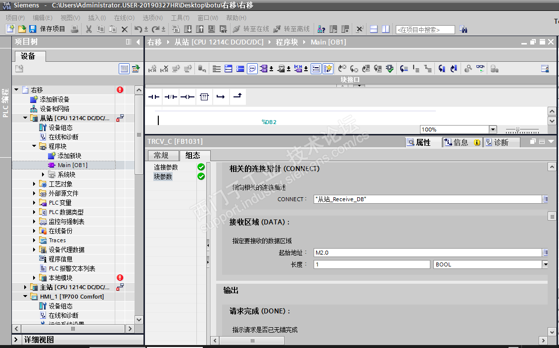 如图,进行位传输的时候,指令发布出去,m2.0监控发生了变化。但是从站的接受m2.0没有变化,求专家指点
