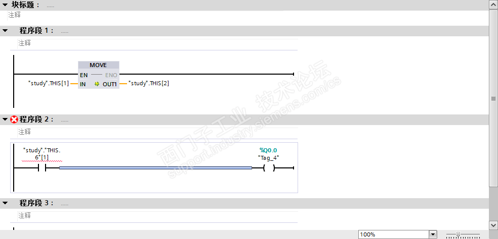 如图,我建了一个ARRY_DB数据块,如果使用其中的位,该怎样使用,在写位的变量时也显示了DB_ARRY数据块中有可用的变量,但是书写不好正确的格式,请指教。