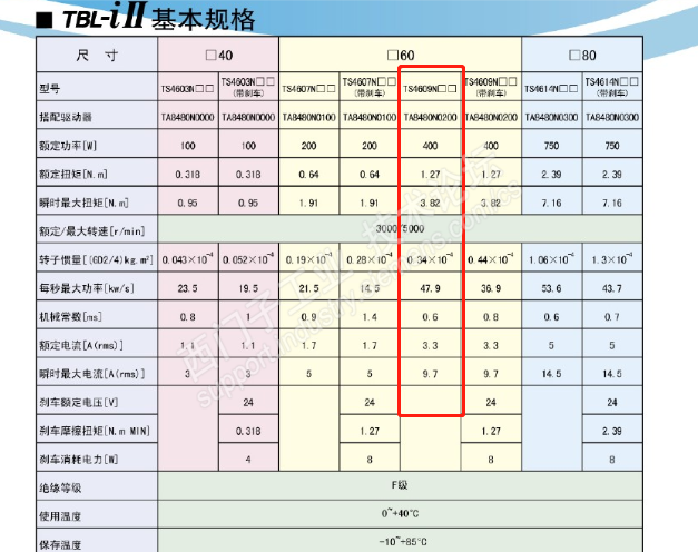 我手上有一个伺服电机,电机功率是400W的,电机电压是200v的,额定电流是3.3A。额定转速是3000r/min,最高4800r/min,我算下来额定频率是200HZ,其他参数请见图片。