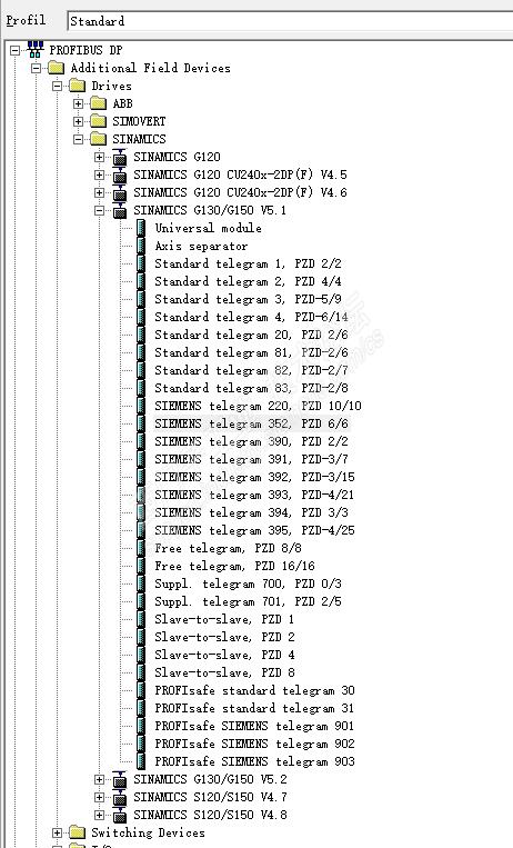 新增的G130 变频器,CU320-2dp v5.1版本,下载的5.1的GSD文件,硬件IO配置如图所示,但是这样好像不对,跟CU的通讯都正常,和DRIVE的通讯字变频器和PLC两边都没接收,但是SFC14和15状态也都是0正常。有的说这两个PZD之间要加一行空的,该怎么加