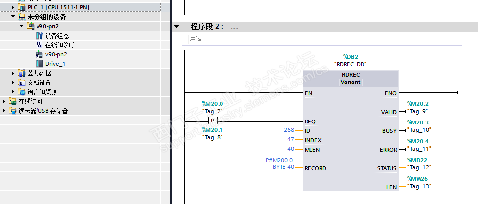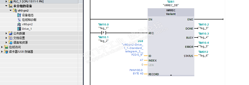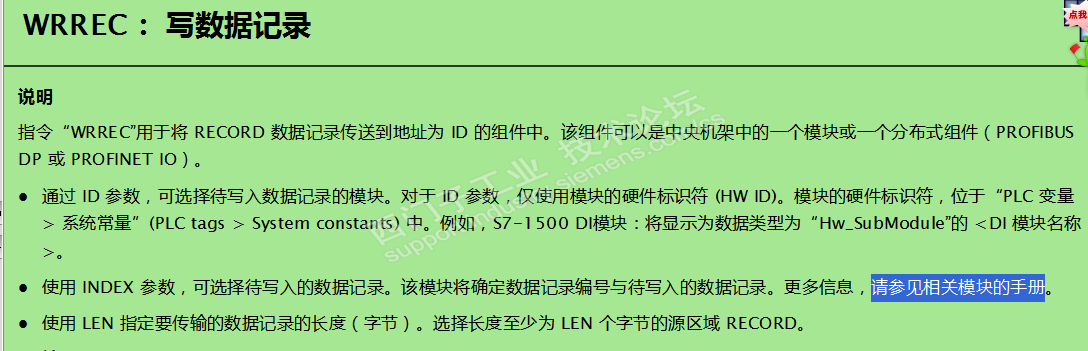 在使用profinet控制V90伺服时。在官方的文件里有用WRREC和RDREC指令的,INDEX管脚都是47.在其它的例程文件中,INDEX管脚也都是47。在找为什么的时候,只说请参见相关模块的手册。今天传不了图了。sorry。