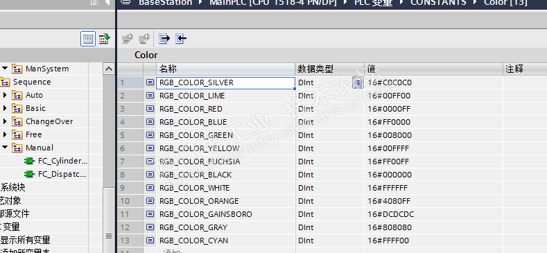 我的意思是在PLC里定义一个整型变量,直接连接,PLC里赋值修改面板对象里的背景颜色值,不是每次需要在面板对象里编辑范围和调整颜色,这样不利于统一处理