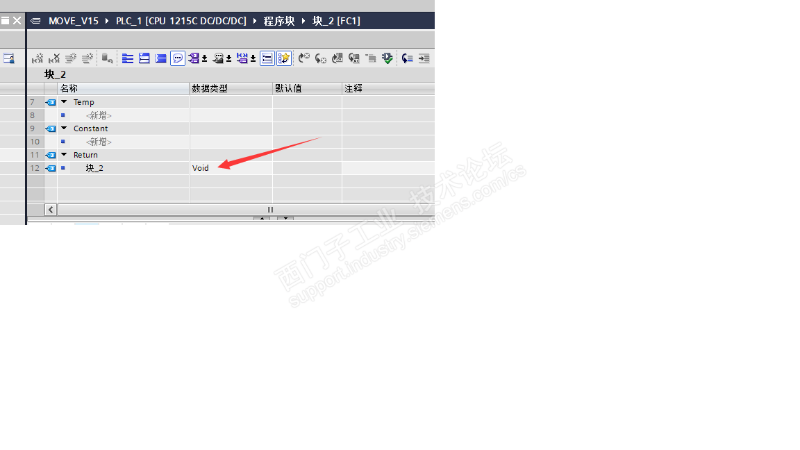 如果想使用,把它改成需要的数据类型,然后调用该FC的时候,就会在块右边看到这个接口,可以看做一个输出接口