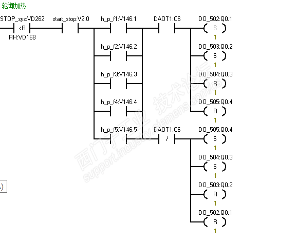 各位给看看,我想实现图一轮询加热轮询时间可设置,图二这样编程不行,一组是按设置时间加热,到了另一组就一分钟,各位给看看该怎样编程。指导个思路