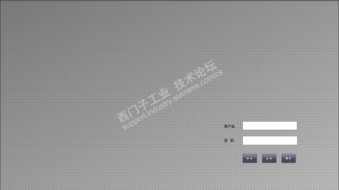 2、在图形编辑器中添加了2个IO域(用户名、密码),3个按钮(登录、注销、退出);