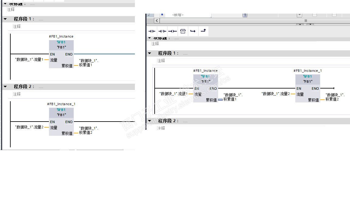 调用两次FB1,下图两种调用有区别吗?谢谢