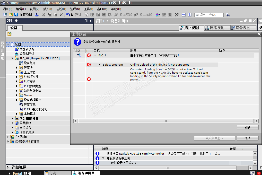 如图,安全型CPU1214FC系列的在点击上传时出现的画面。 请问怎么解决。