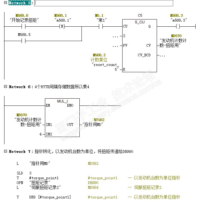 附件所示程序,计数器C5计数后,乘以4存入MD582,用作DB存储区偏移量;将MD564中的数据按MD582中偏移量存入DB990中。按如果用ANY指针,程序该怎么编?