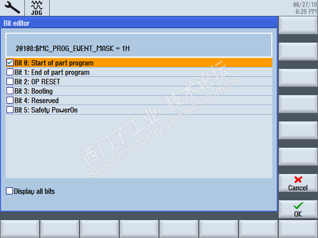 在通道数据中搜索MD20108,双击后勾选0位(在零件程序开始触发"事件触发宏程序")