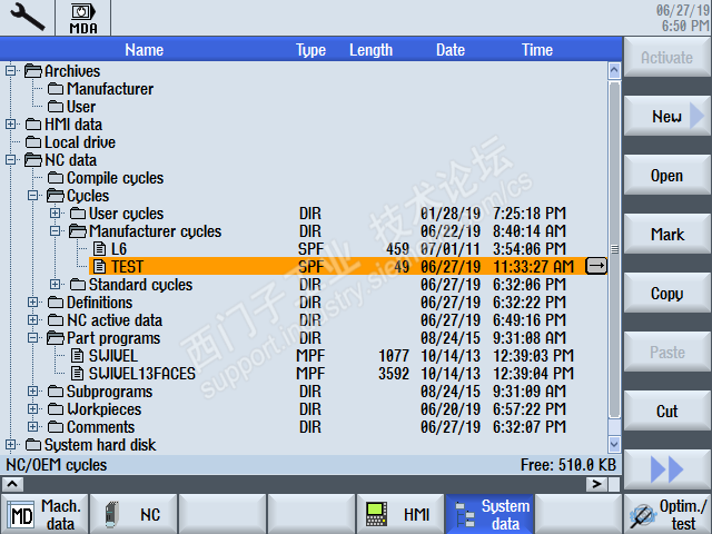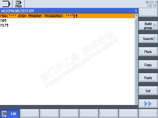 为了便于测试,自建一个子程序作为事件触发异步宏程序,例如:TEST.SPF,存放在制造商循环文件夹中