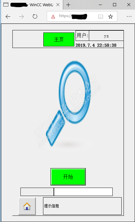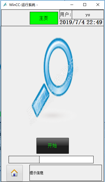 下图为wincc激活运行后的画面(非Web),登陆的用户名为ys,显示正常