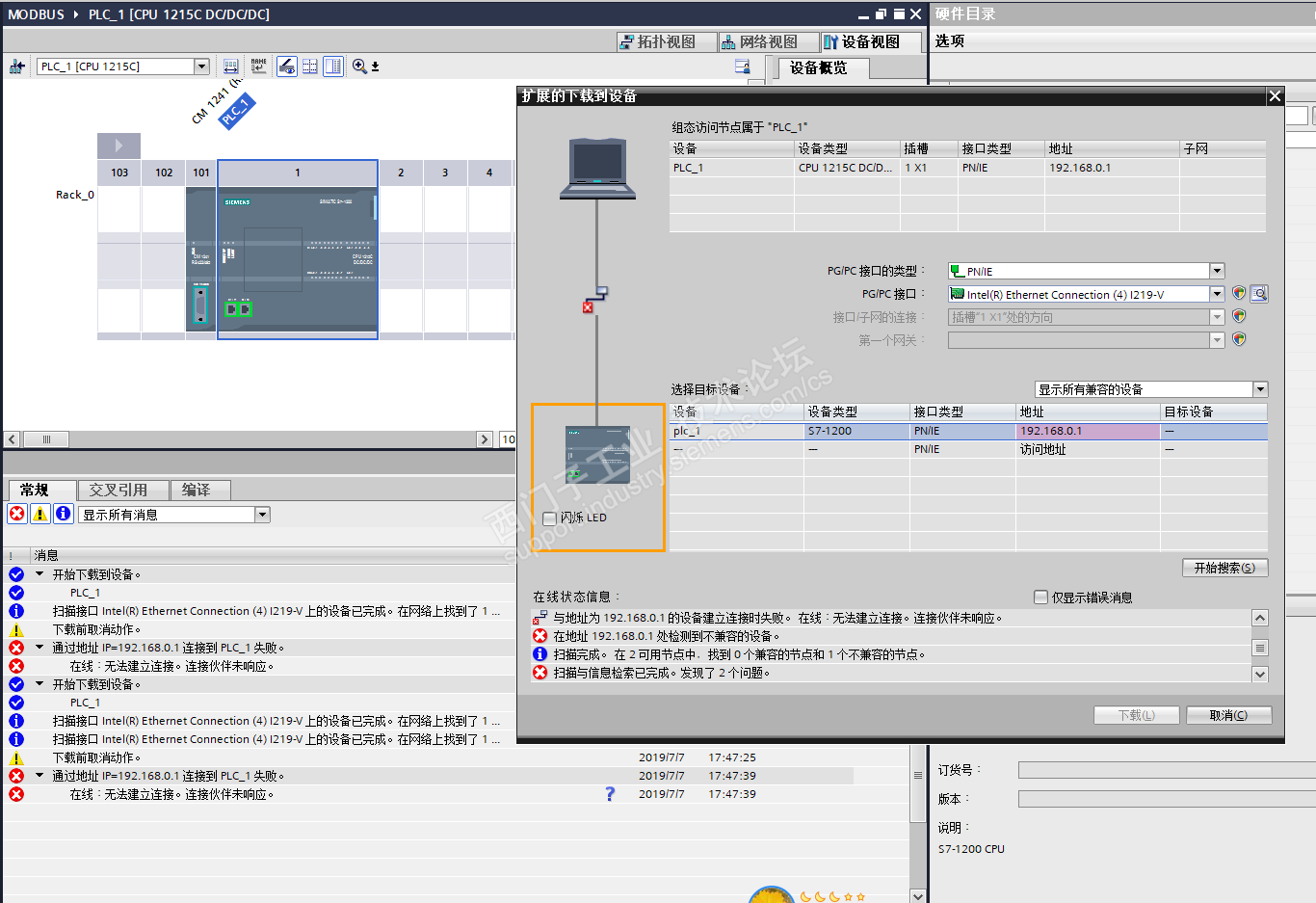 你好工程师,下载时提示错误。硬件和组态的型号版本号都是一样为什么报错。谢谢
