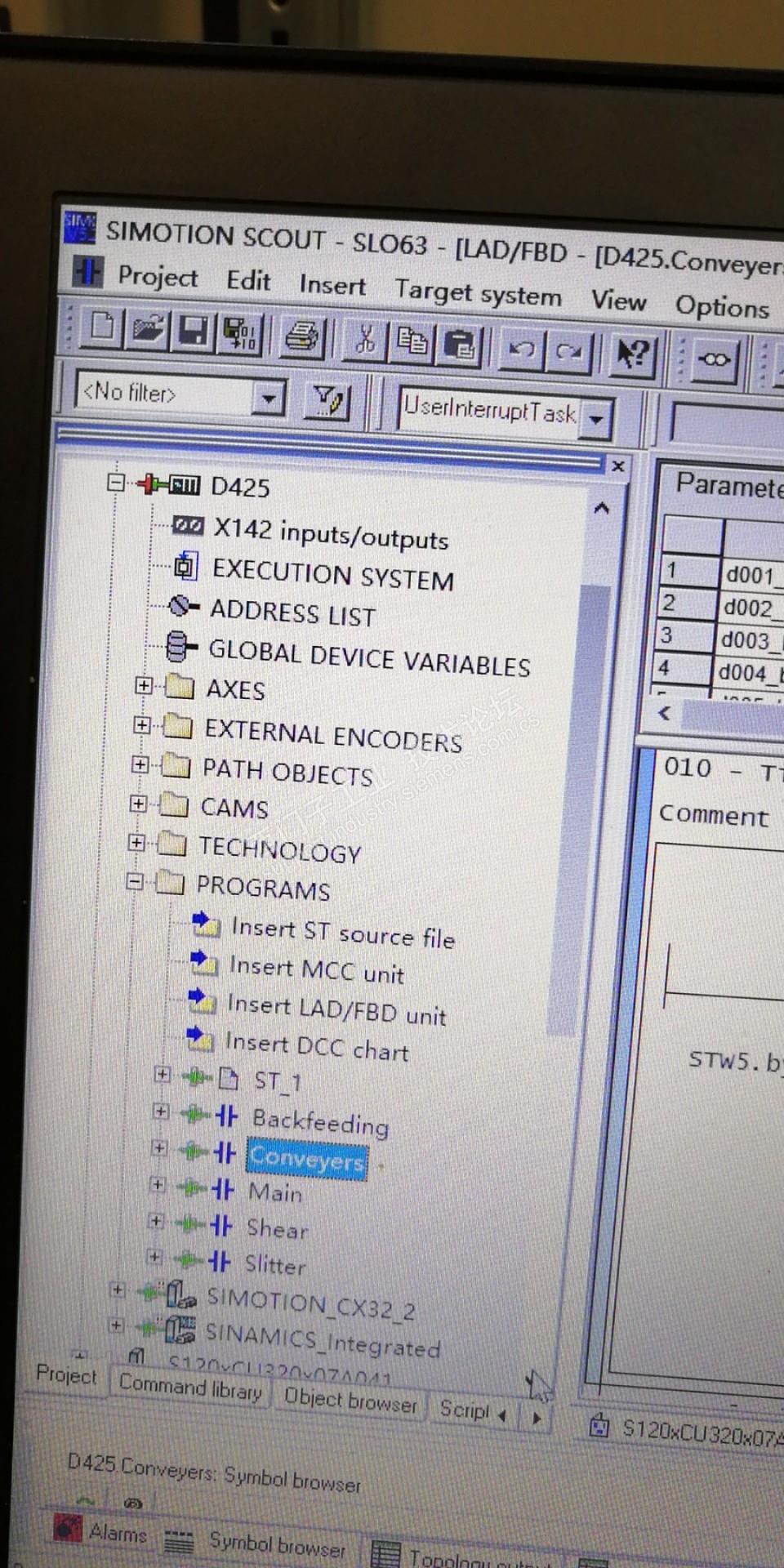在线SIMOTIOND425,发现图标红色参数不一致,然后我上载了一遍还是这个图标,请问是什么原因,它底下的轴、S120,程序都是绿色。