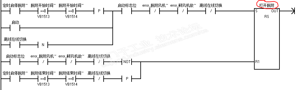 在PLC上有被置复位控制的位元件,下图中就是一个PLC上对一个位元件的置复位控制,但有时希望在HMI上能够直接改这这个位元,请问有什么好的方法么?如下图中的打开脱附就是一个被置复位控制的位元,但有时想在HMI屏上直接改变它有什么好的方法么?我现在是在HMI上直接做切换钮改变它,但这样做似乎有双重控制的嫌疑,虽实际用暂还没有发现问题,但不知会不会出现程序失控的可能?