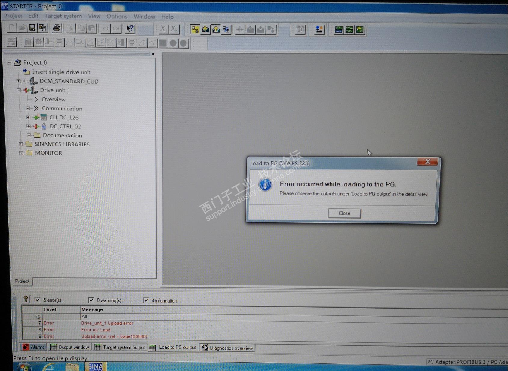 用STARTER通过PC-Adapter,上载6RA80 DCM参数失败,多次上载,都是显示Load 22%卡住;过一会就报错。 适配器直接连接到6RA80CUD板的DP接口上的。 请大师帮忙分析原因,非常感谢!