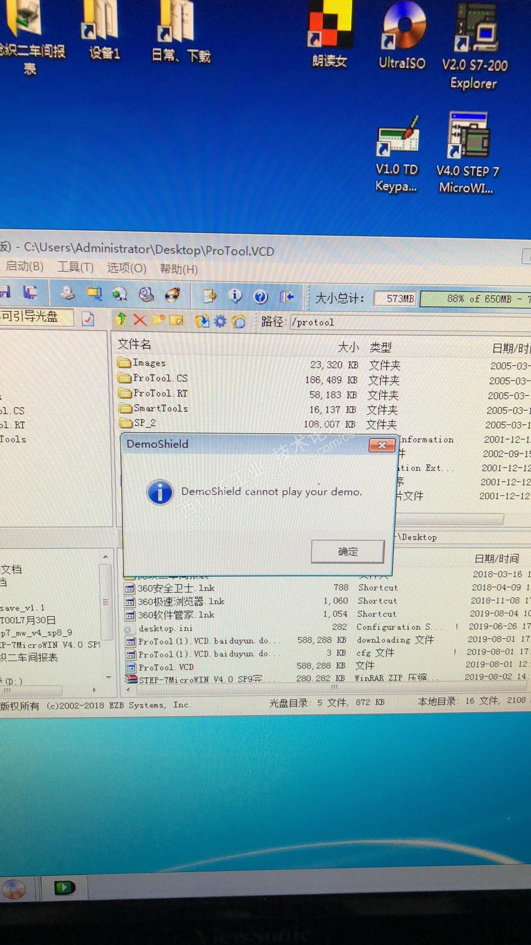公司有一个版本很老的TP270 TOUCH-10 CSTN触摸屏,产品信息显示组态软件是PROTOOL,软件已下载,但安装过程中出现一个问题:点击安装程序,出现一个对话框demoshield play,打开一个*.dbd文件,关闭对话框时会提示demoshield cannot play your demo。如图。