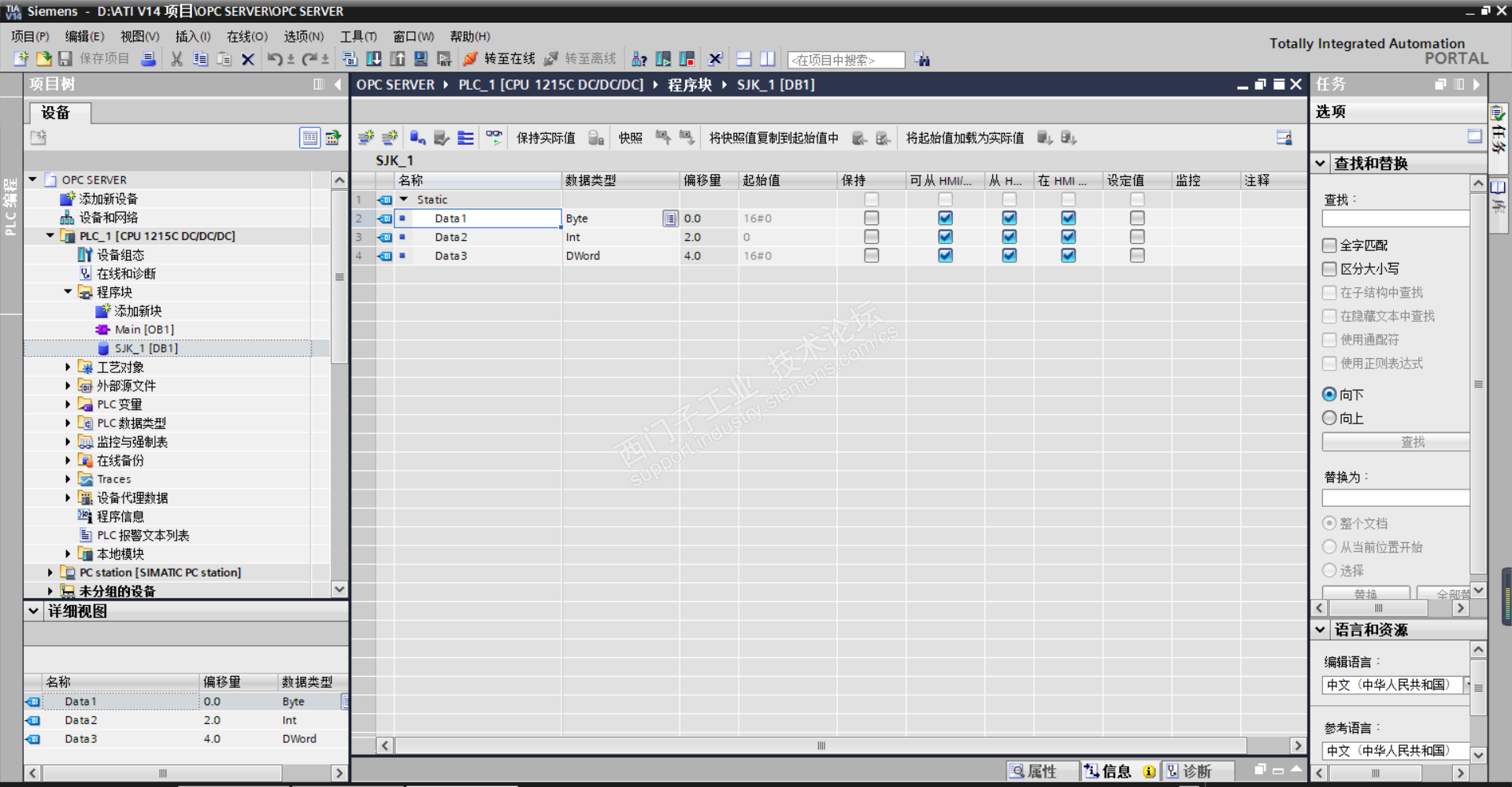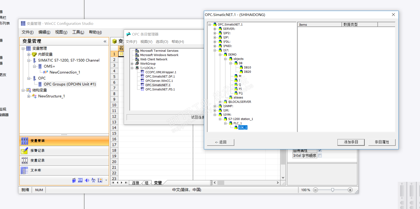 请教一下,我想用WINCC与SIMATIC NET建立OPC 通讯,SIMATIC NET 组态完成以后在WINCC里能找到组态的PLC和DB块,但是为什么没有变量,而且看了一些资料,因该在S7目录里面出现,为什么我的在SYSTEM里面,请各位指教一下!
