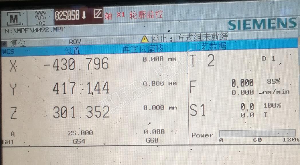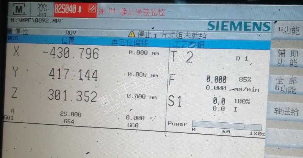 正常关机后,第二天开机要求回原点。切换到JOG模式后,移动YZ轴正常,移动X轴,此时机床和坐标值动一下,就会出现报警。025040 轴X1静止误差监控或者025050 轴X1轮廓监控